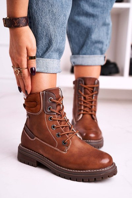 +2Damskie Ocieplane Workery Trapery Brązowe Timber