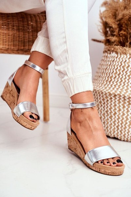Sandałki Damskie Na Koturnie Srebrne MarryMe