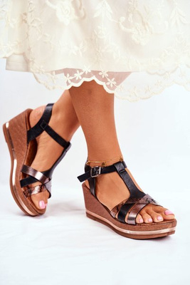 +1Sandały Damskie Na Koturnie Czarne Monroe