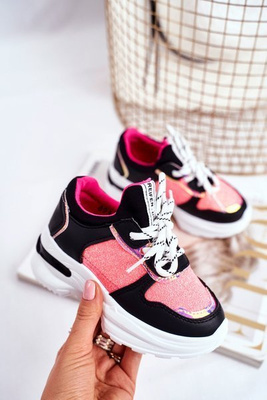 Obuwie Sportowe Dziecięce z Brokatem Czarno-Różowe Matylda