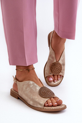 Sandały Damskie Na Koturnie Z Plecionką Złote Starlenna