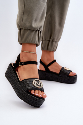 Sandały Damskie Na Koturnie Z Plecionką Czarne Esalena