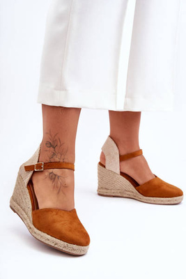 Zamszowe Sandały Na Koturnie Brązowe Selfoss