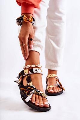 Damskie Wygodne Sandały Z Ozdobą Czarne Irvine