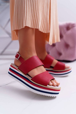 Sandały Damskie Na Słupku Gladiatorki Zamsz Czerwone Nella