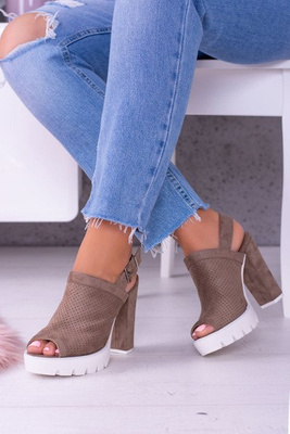 Lu Boo Zamszowe Sandały na Słupku Khaki Emare
