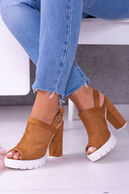 Lu Boo Brązowe Zamszowe Sandały na Słupku Emare