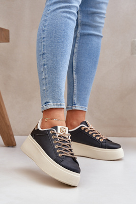 Skórzane Sneakersy Damskie Na Platformie Z Przypinką Vinceza 89101 Czarne