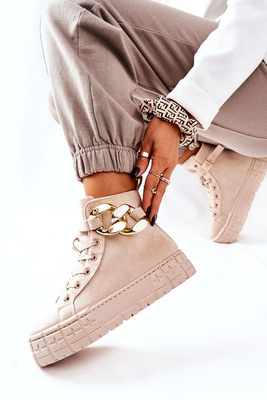 Zamszowe Wysokie Trampki Na Platformie Beżowe Meniphise