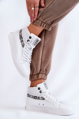 Damskie Wysokie Ocieplane Skórzane Trampki Big Star EE274356 Białe