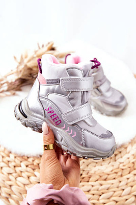 +1Dziecięce Ocieplane Śniegowce Srebrno-Różowe Chilly