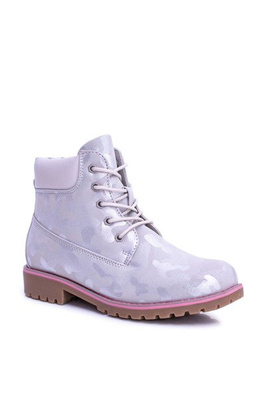 Dziecięce Młodzieżowe Ocieplane Szare Botki Traperki MoroStyle