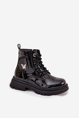 Botki Dziewczęce Lakierowane Na Suwak Ocieplane Czarne Felori