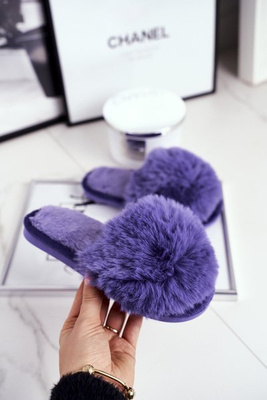Dziecięce Papcie Klapki z Futerkiem Fioletowe Snow Ball