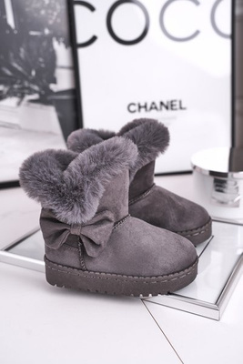 +2Dziecięce botki śniegowce z futerkiem kokardką szare Vella