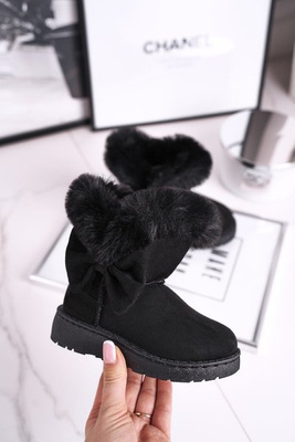 +2Dziecięce botki śniegowce z futerkiem kokardką czarne Vella