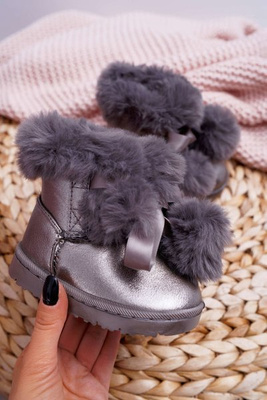 Dziecięce Botki Śniegowce Z Futerkiem Szare Ariana
