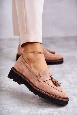 +1Lakierowane Półbuty Loafery Na Platformie Beżowe Reidun