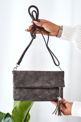 +3Kopertówka Z Odpinanym Paskiem I Frędzlami Szara
