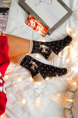 Skarpetki Damskie Świąteczne Renifer i Kropki Czarne