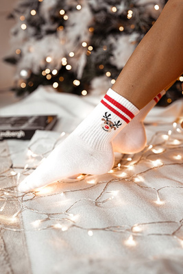Skarpetki Świąteczne Renifer Prążek Z Paskami Białe
