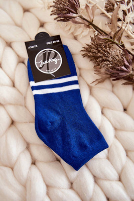 Młodzieżowe Skarpety Dwukolorowe Z Paskami Granatowo-Niebieskie