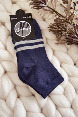 Młodzieżowe Bawełniane Skarpety Za Kostkę Granatowe