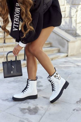 +1Damskie Botki Trapery z Czaszką GOE II2N4048 Białe