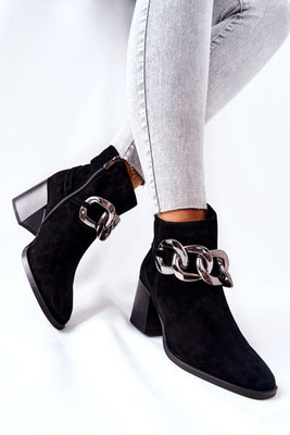 Damskie Skórzane Welurowe Botki Nicole Czarne 2680/028