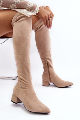 Damskie Kozaki Za Kolano Na Niskim Obcasie Jasnobeżowe Maidna