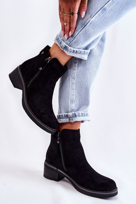 Zamszowe Botki Na Niskim Słupku Czarne Laurisa