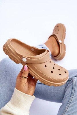 +4Damskie Gumowe Kroksy Brązowe Rabios