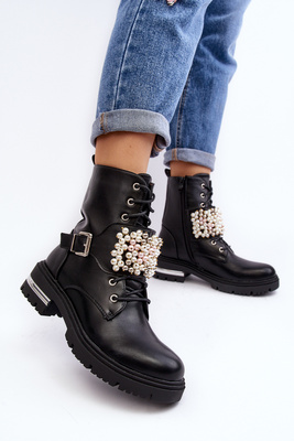 Damskie Ocieplane Botki Workery Zdobione Czarne Lennen