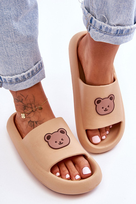 Lekkie Damskie Piankowe Klapki Z Misiem Beżowe Lia