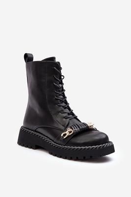 Botki Workery Z Łańcuchem Skórzane Czarne Gennee