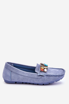 +4Damskie Zamszowe Mokasyny Z Kryształkami Niebieskie Lucille
