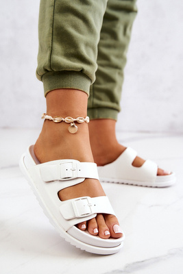 Gumowe Klapki Ze Sprzączką Białe Corina