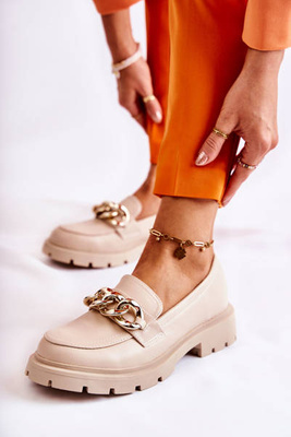 +9Skórzane Półbuty Wzór Krokodyl Z Ozdobą Beżowe Delaver