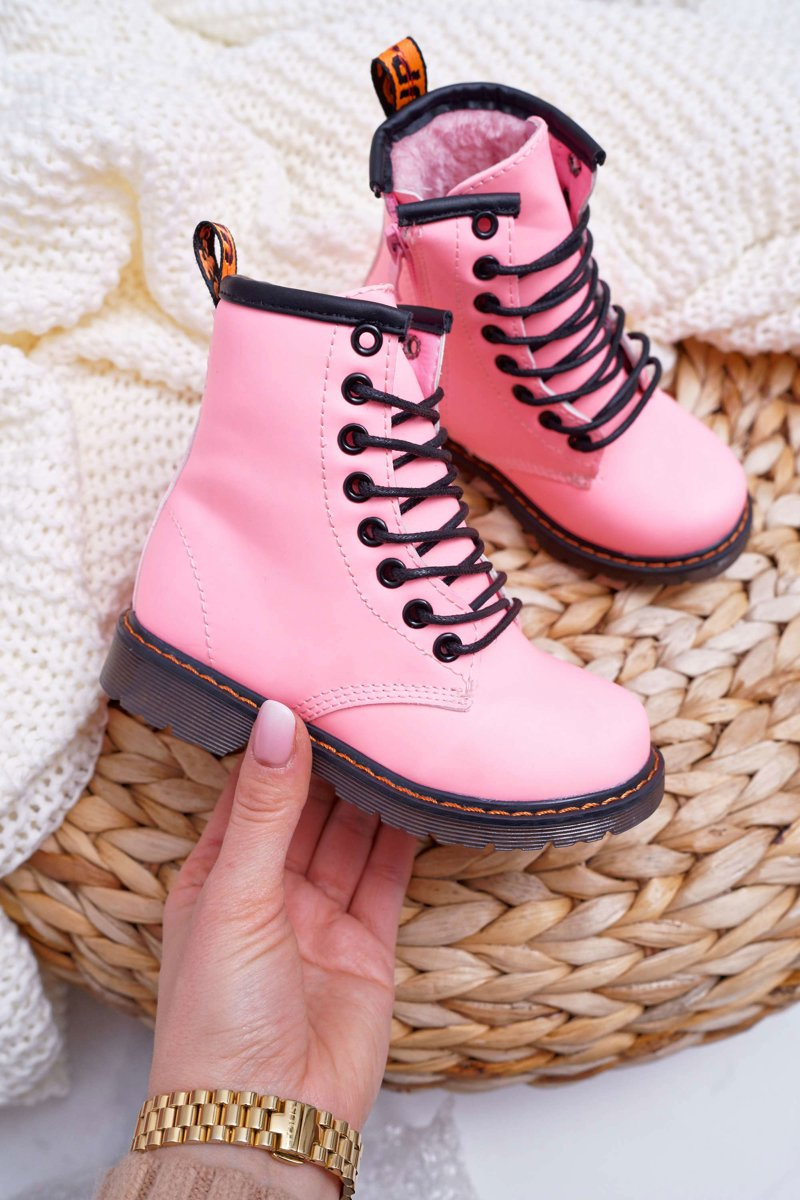 Dziecięce Botki Ocieplane z Suwakiem Fosforyzujące Różowe Gabby