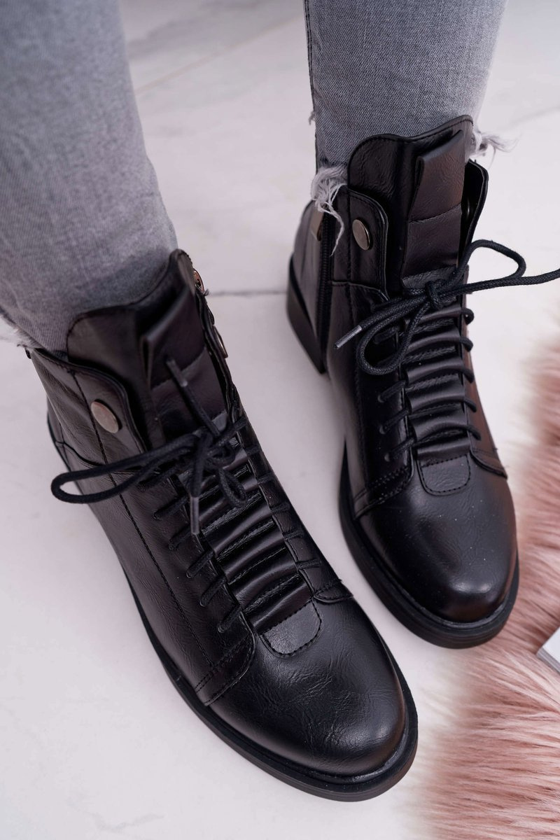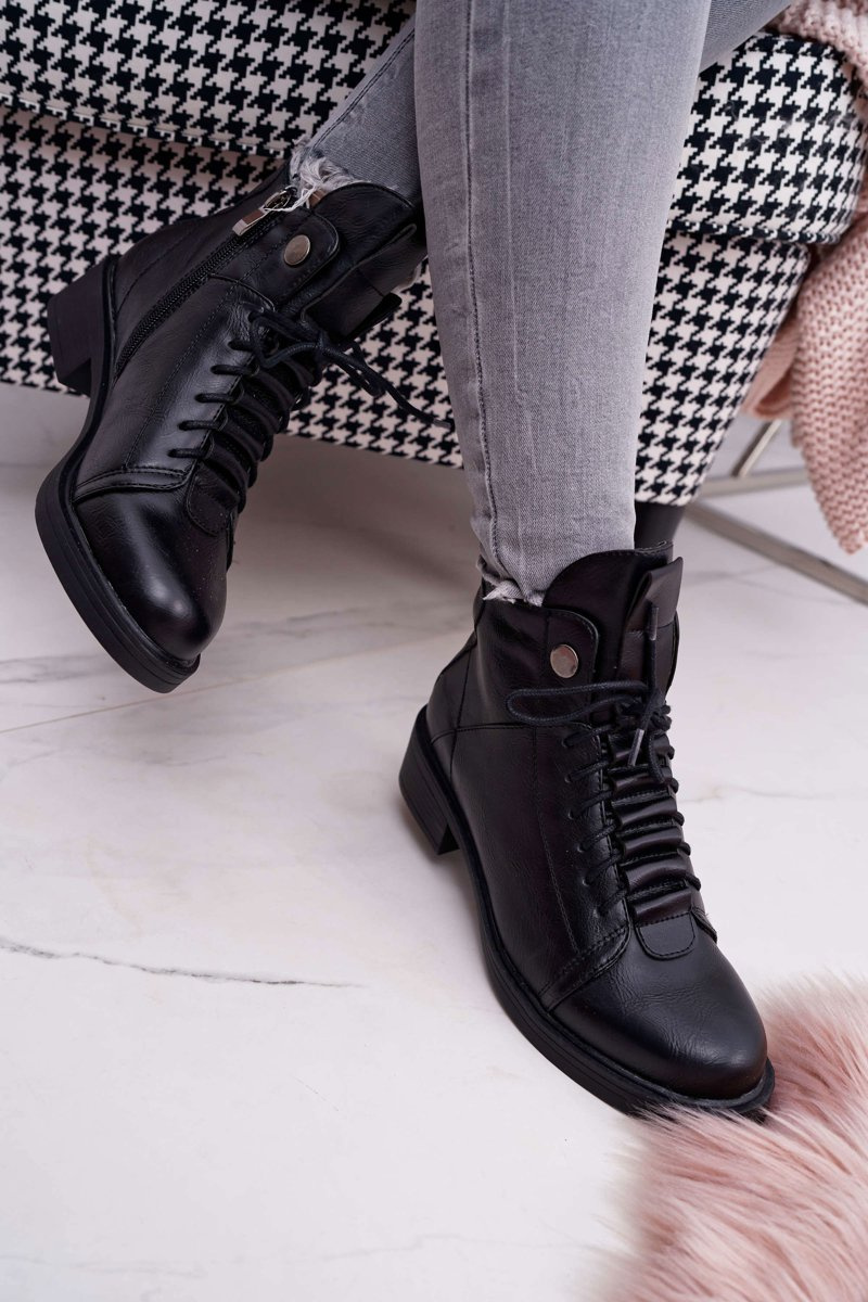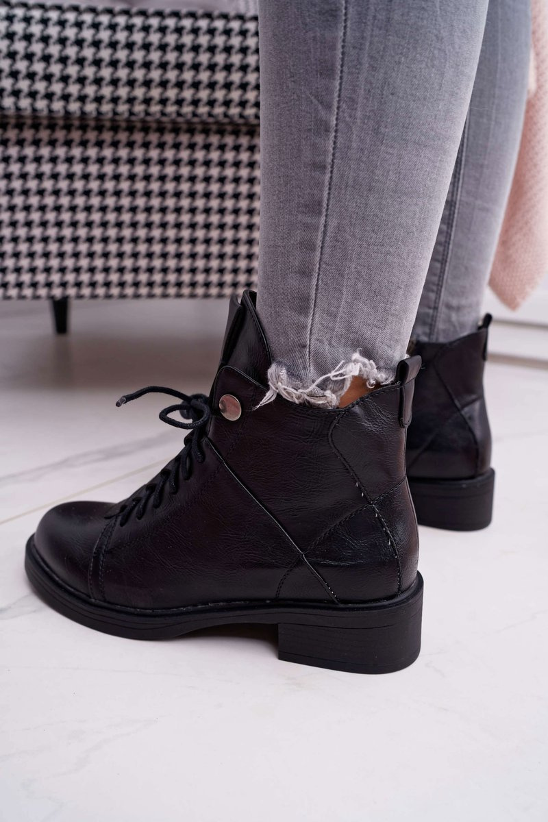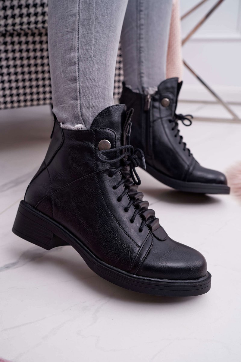 Damskie Botki Płaski Obcas Ocieplane Czarne Livin