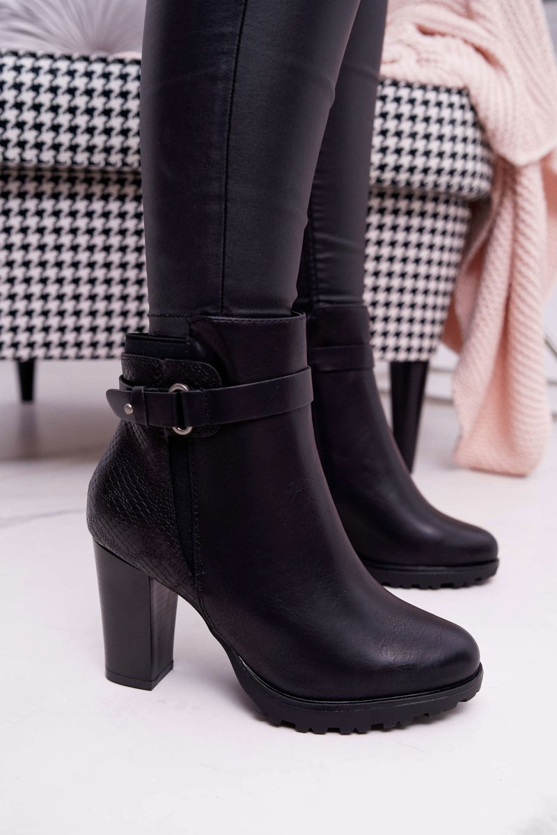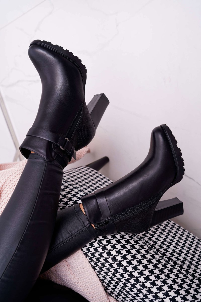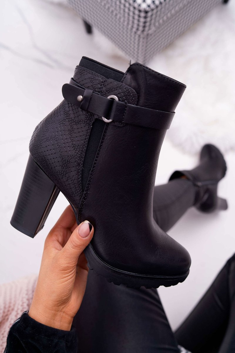 Damskie Botki Na Słupku Ocieplane Czarne Devin