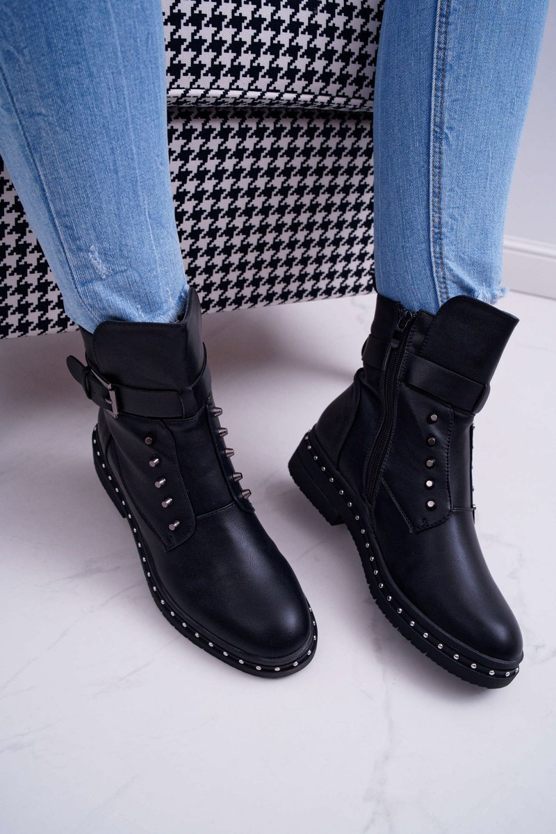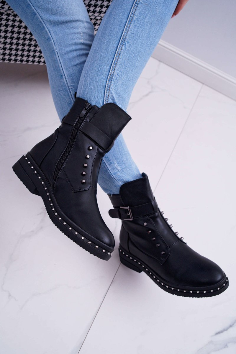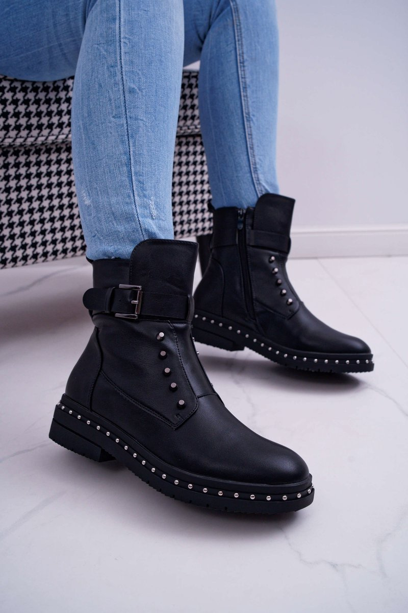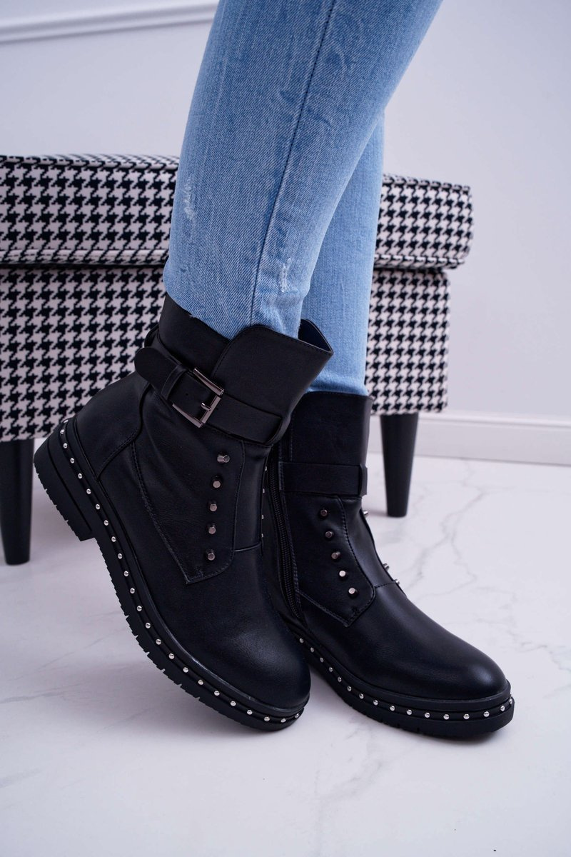 Damskie Botki Ocieplane Futerkiem Czarne Piano