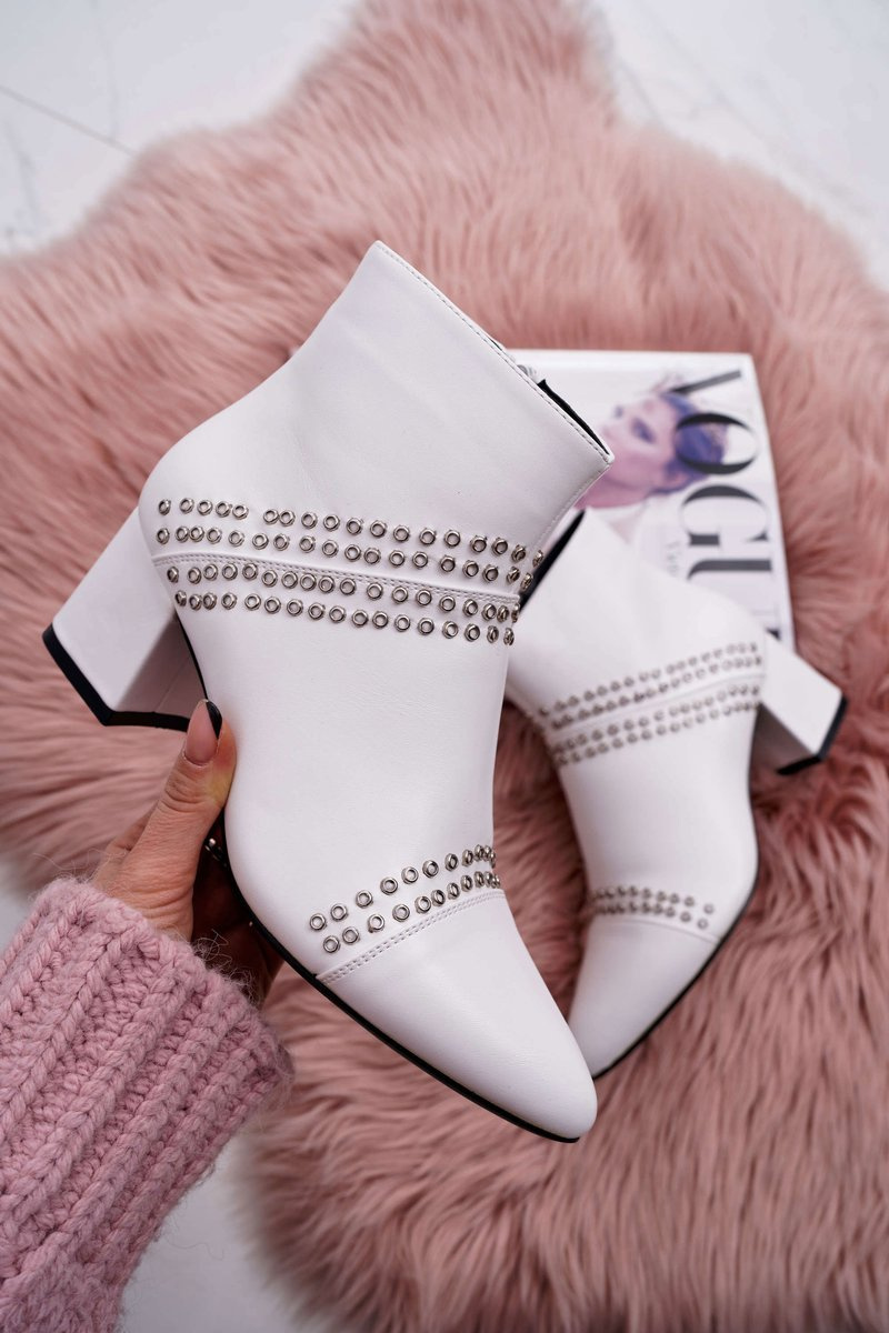 Damskie Botki Na Słupku W Szpic Z Nitami Białe Primma