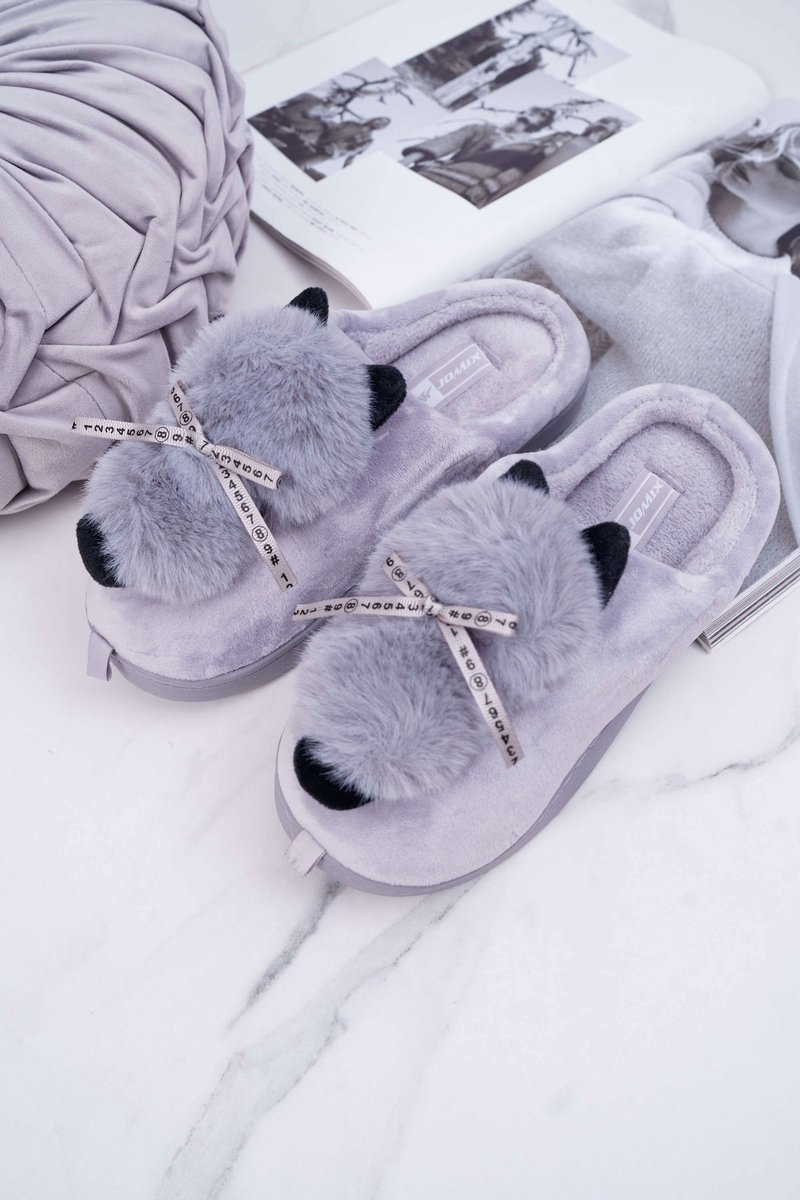 Papcie Damskie Z Futerkiem Kotek Szare Kitty