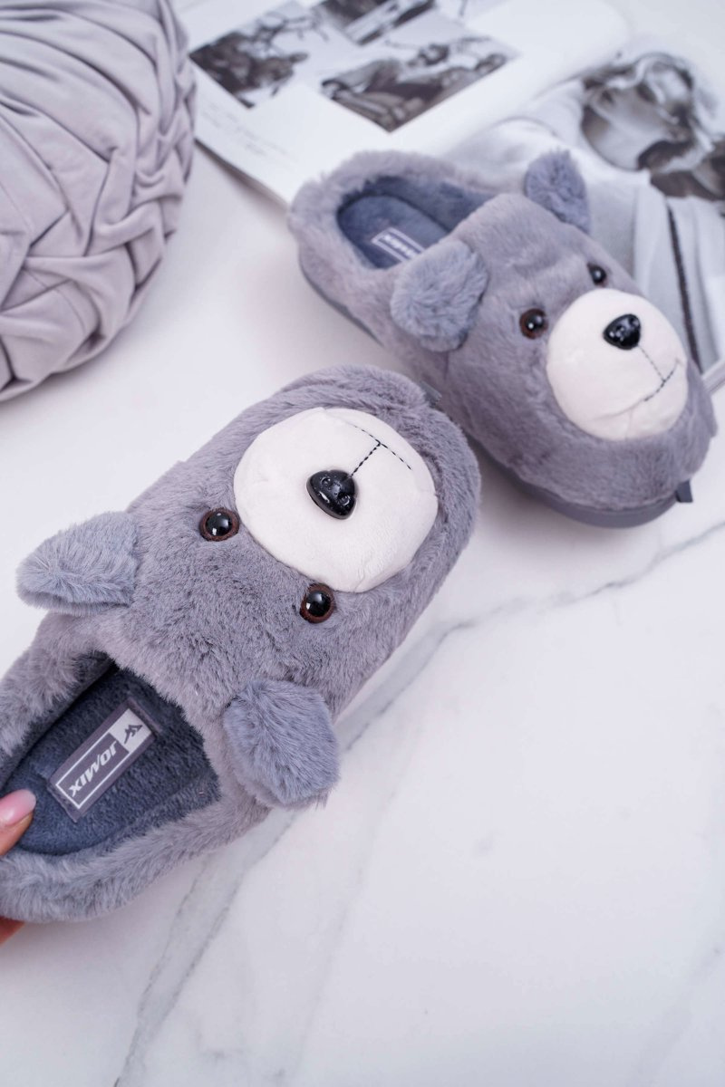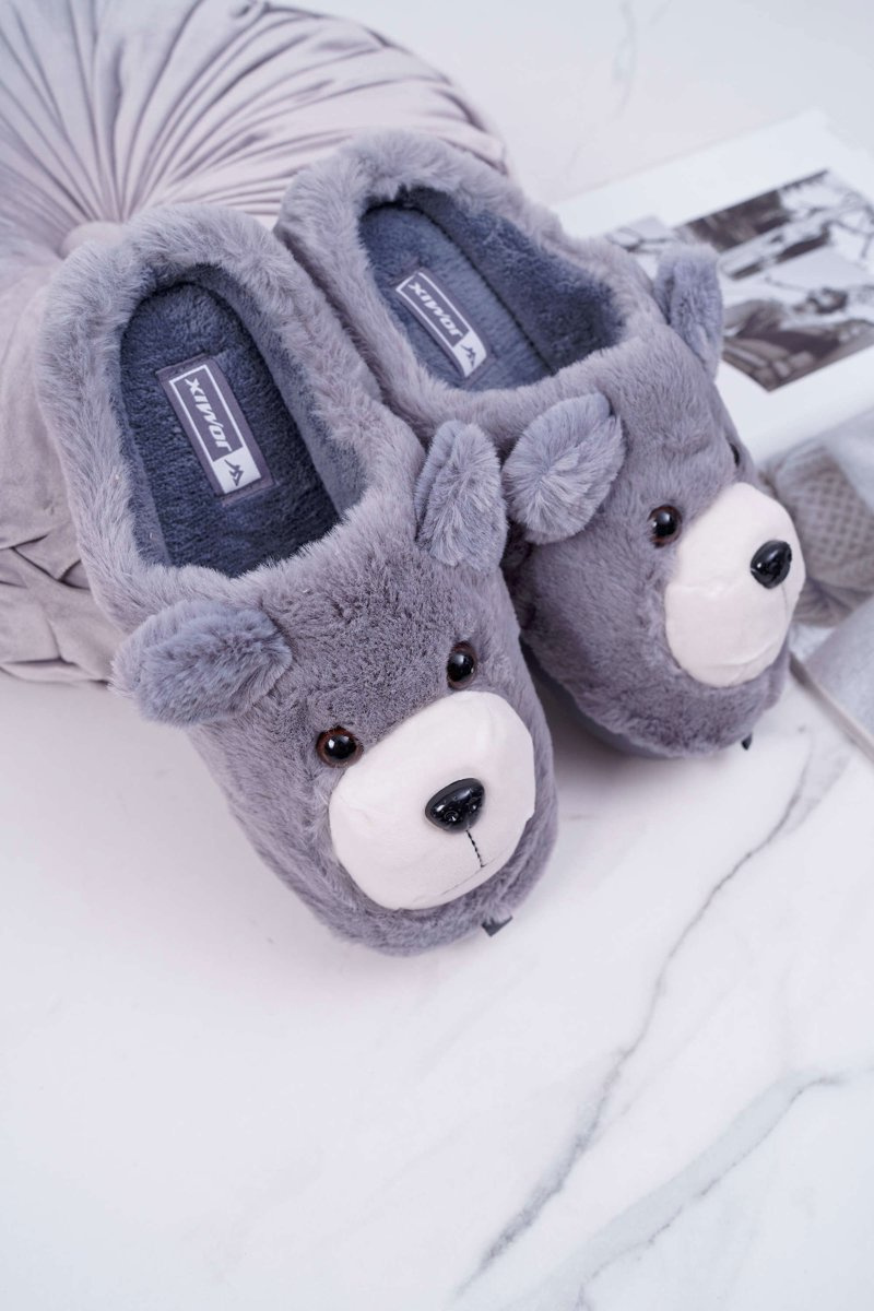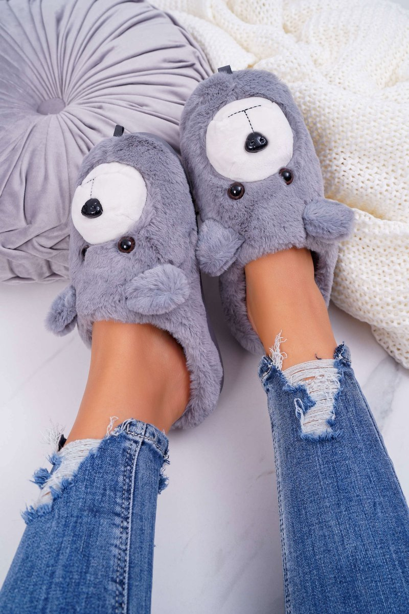 Papcie Damskie Z Futerkiem Miś Szare Bear