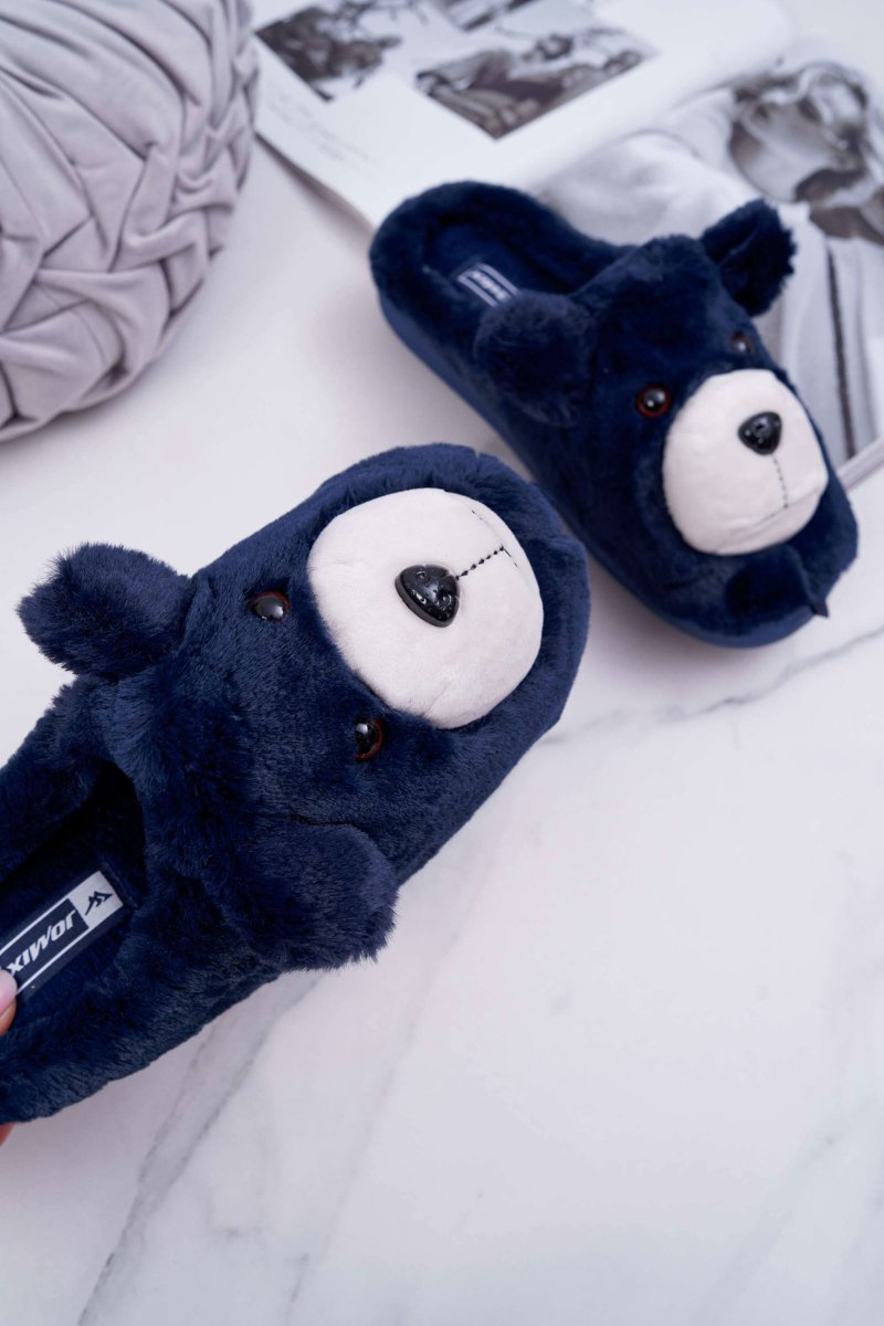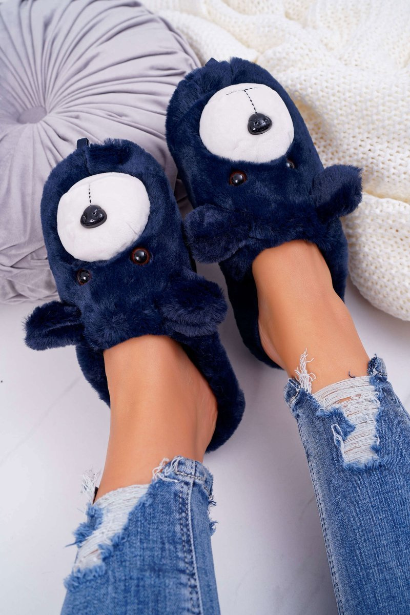Papcie Damskie Z Futerkiem Miś Granatowe Bear