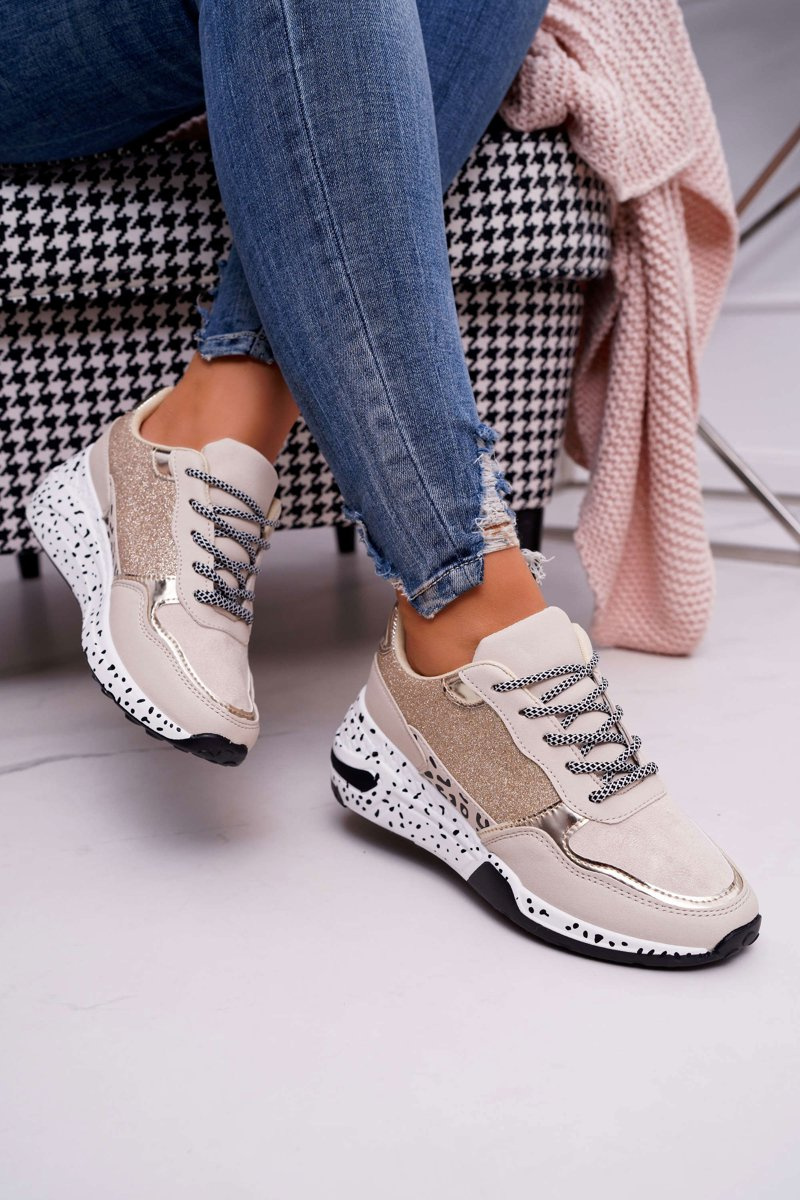 Sportowe Damskie Buty Gruba Podeszwa Beżowe Nokien
