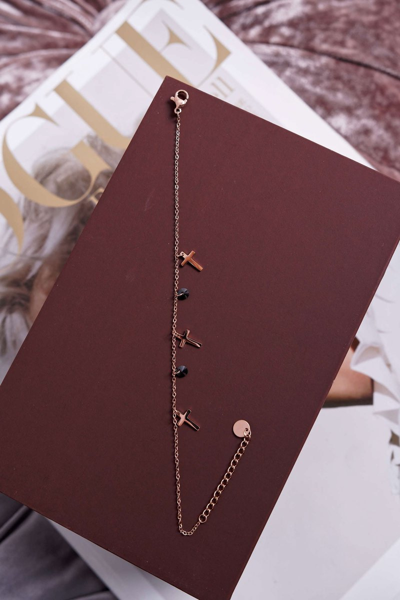 Damska Bransoleta Celebrytka Różowe Złoto Trzy Krzyżyki