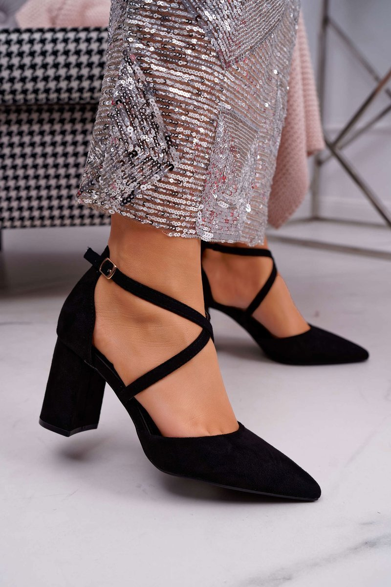Czółenka Damskie Na Słupku W Szpic Czarne Future