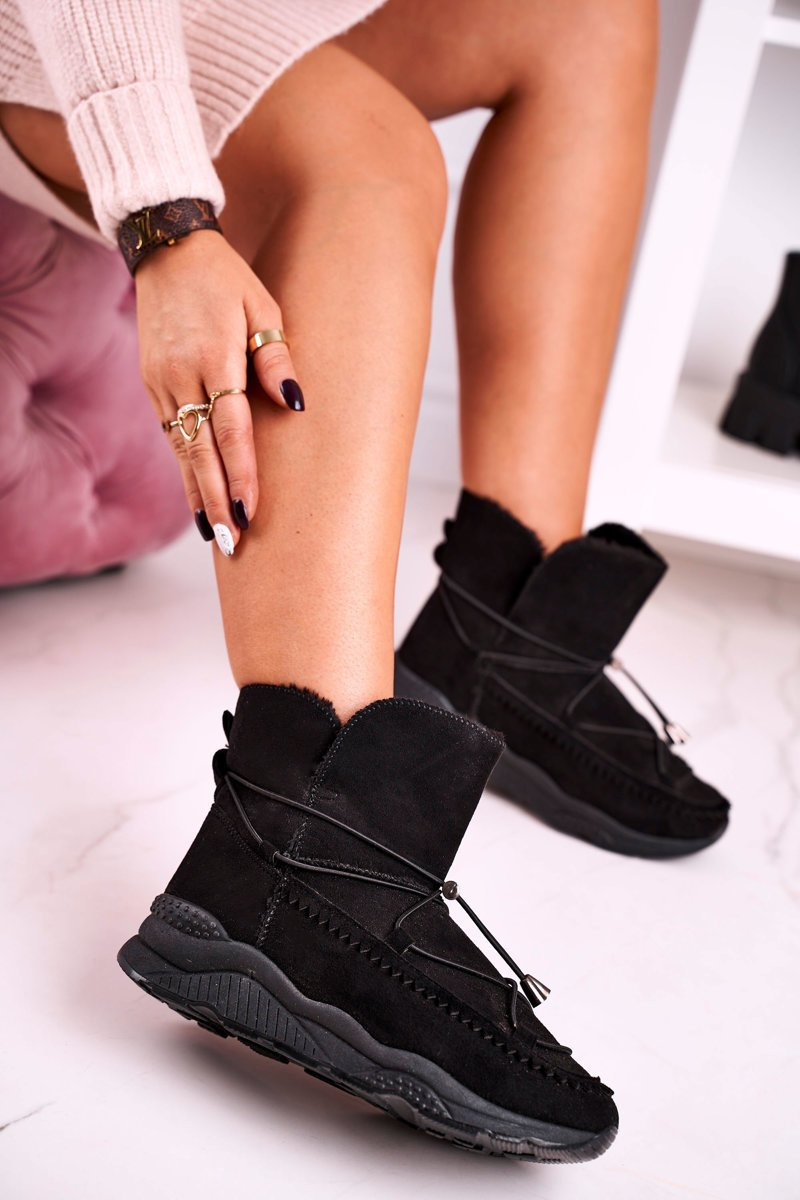 Damskie Botki Śniegowce Sportowe Ocieplane Futerkiem Czarne Synte